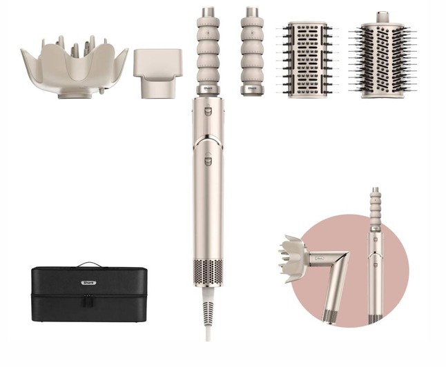 Secador e modelador Shark FlexStyle 5 em 1 para todo o tipo de cabelo. Seca e modela com tecnologia Coanda, 3 ajustes de calor e fluxo de ar, e proteção contra o calor excessivo. Inclui 5 acessórios e estojo de viagem.